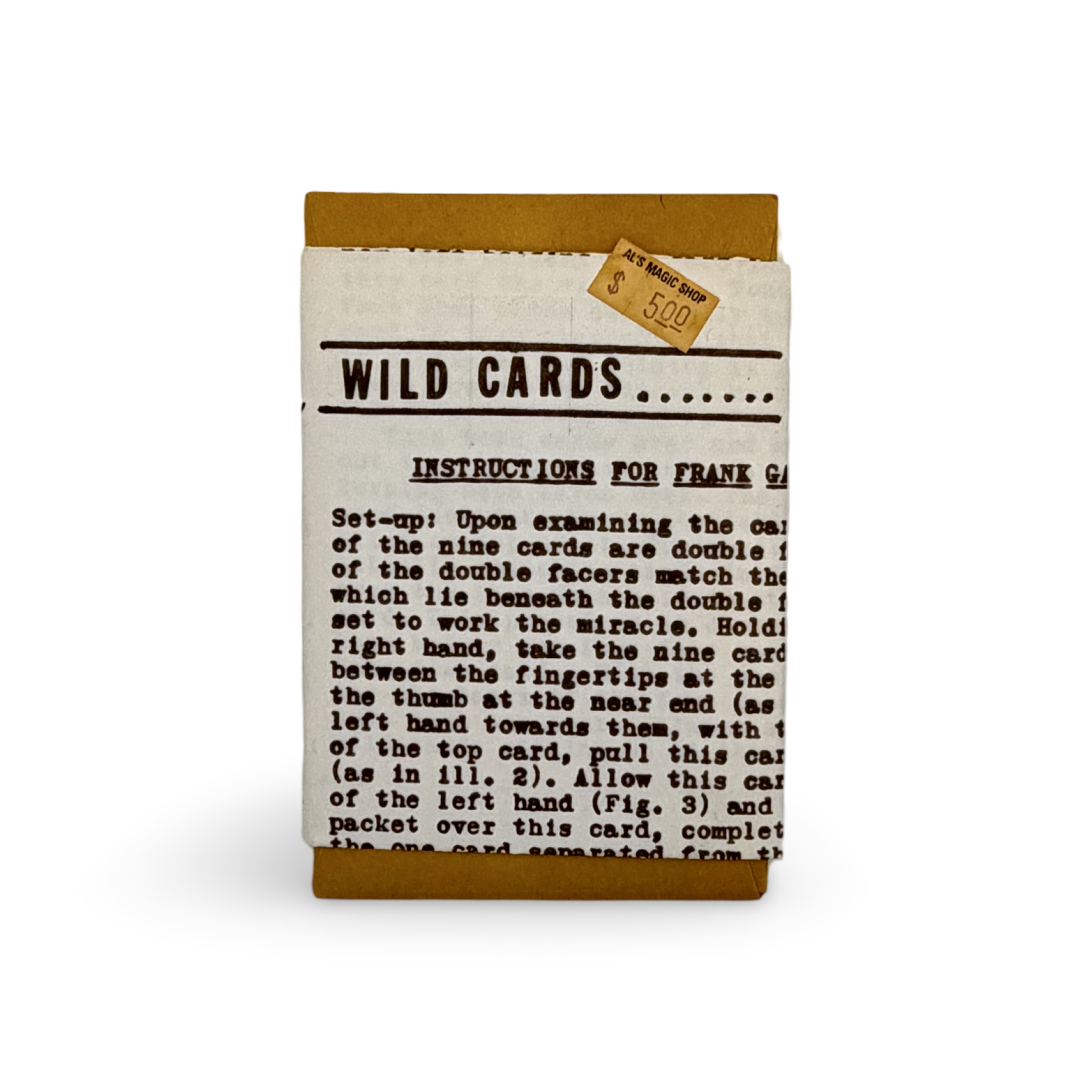 Four cards are continually shown blank on all sides. All the moves are done slowly and deliberately, yet at the magician’s command they transform into four queens of one kind. As magically as they appeared, they disappear and the magician shows all the cards blank. Only four cards are used. Includes original cards, and original four-page instructions with 48 photographs of handling.