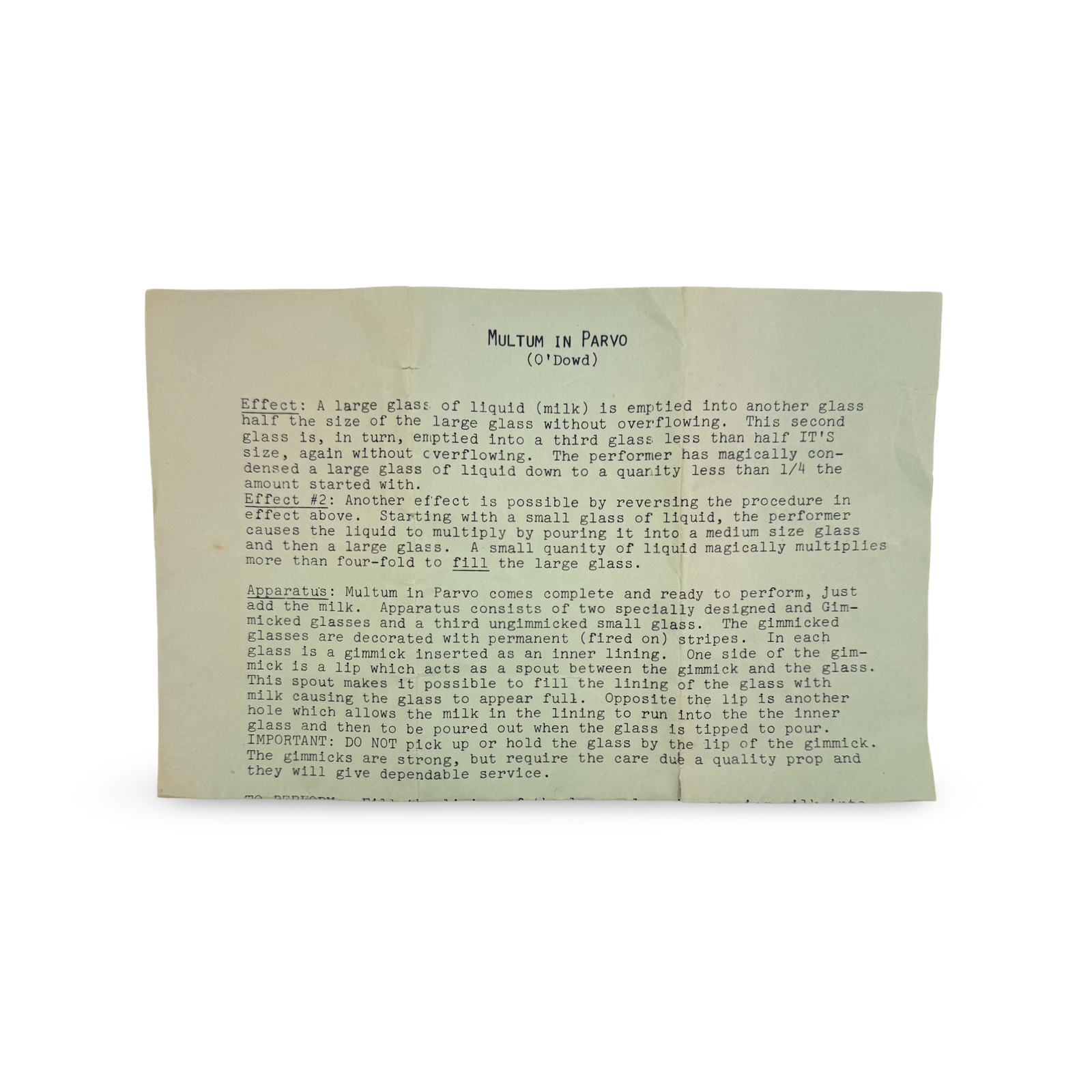 The Collectors’ Magic Shop Parlor & Stage Books & Ephemera Close-Up ABC Blocks $495.00 Multum in Parvo $120.00 Plate Restored $245.00 Fifi the Card Pecker $325.00 Killing Time Spirt Clock Sale Price: $495.00 Original Price: $595.00 Sale Silk Cabby $195.00 Vanishing Alarm Clock $495.00 Por-Mor—Fil-Mor $245.00 Crystal Goblet $695.00 Nu Mystic Links $125.00 Mutilated Parasol $595.00 Rabbit Wringer $195.00 Vanishing Salt Trick $75.00 FISM Flash $95.00 Patriotic Billiard Balls $120.00 Thayer Sand Frame $495.00 Levitate $20.00 New Break-Away Die Box $895.00 Run Bonzo Run $400.00 Alpha-Mental $75.00 Spirit Bell $195.00 Enchanted Rabbit Hutch $225.00 Spectacular Production $450.00 The Giant and the Dwarf $295.00 Ribbon Fantastique $245.00 Stocks of Solomon $495.00 Cuba Libre $295.00 Astrosphere $245.00 Pearlescent Billiard Balls $100.00 The Miracle Glass $95.00 Aerial Fishing Sale Price: $365.00 Original Price: $395.00 Sale Rocky the Raccoon $125.00 Billiard Ball Stand $495.00 Tambor $275.00 Production Valve Funnel $225.00 Thayer Incubator $345.00 Massey Flame Clock $395.00 Brahmin Rice Bowls $145.00 Aquarium $325.00 Tarbell Egg Bag $20.00 Block Phantom Sale Price: $495.00 Original Price: $595.00 Sale German Multiplying Balls $75.00 Fantasio Vanishing Candle $25.00 Cigarette Loader $75.00 Hamilton Card Duck $325.00 Coke of Plenty $795.00 SOLD Live Wire $45.00 German Multiplying Balls $85.00 Appearing Bird Cage $275.00 Utility Tube $175.00 Production Birdcage $135.00 Crystal Silk Cylinder $125.00 Color Rhapsody $65.00 Rabbit Through Glass $595.00 Babcock Square Circle $275.00 Spurting Rice Bowls $125.00 Ching Soo Firecracker $135.00 Rice Bowls $165.00 Razor Blade Stand $295.00 Phantom Die $245.00 Phantom Tube $75.00 Hartz Card Frame $495.00 Egyptian Water Box $225.00 Tricky Bottles $135.00 Fantastic Frame $245.00 Hades Fire Bowl & Dove Pan $295.00 Gift Cards from $25.00 Rabbit Utility Box $395.00 Vanishing Cigarette Holder $100.00 Spirit Bell $245.00 Appearing Die $195.00 P&L Change Bag $125.00 Comedy Cup and Saucer $65.00 Thayer Mini Die Box $495.00 Snakes in Watering Can $45.00 Victorian Spirit Silk Box $325.00 Vintage Clatter Box $85.00 Jumbo Slat Card Frame $395.00 Comedy Funnel $175.00 Card Spider $475.00 Applause Card $35.00 Hippity Hop Rabbits $195.00 Karpinski Card Star $450.00 Blarney Die $155.00 Comedy Card in Balloon $75.00 Run Rabbit Run $225.00 Thayer Nic's Napkins $595.00 Organ Pipes Production $125.00 Improved Final Card $175.00 Vase, Cone, Beans and Orange $175.00 Spirit Light $295.00 Milk to Silk $25.00 Mujinzo Production Box $195.00 Penetra-Spheres $395.00 Dancing Hank $245.00 Lester Lake Guillotine $2,995.00 Miracle Cage Vanish $400.00 Hippity Hop Rabbits $135.00 Zombie Floating Ball $125.00 Fraidy Cat Rabbit $150.00 Production Birdcage $295.00 Herman Hanson Rice Bowls $100.00 Book Test $10.00 Super Coke Production $125.00 Watch Your Step $85.00 Fraidy Cat Rabbit $130.00 Bamboo Wands $195.00 Modern P&L Table Base $200.00 Magic Tea Kettle $65.00 Dove in Balloon $125.00 Demon Arm Chopper $395.00 SOLD Nesto Candles $100.00 Appearing Candle $295.00 Milson Worth Die Box $225.00 La Paloma $225.00 Multiplying Pipes $125.00 Japanese Handkerchief Box $95.00 Discover More Treasures Close-Up Parlor & Stage Books & Ephemera