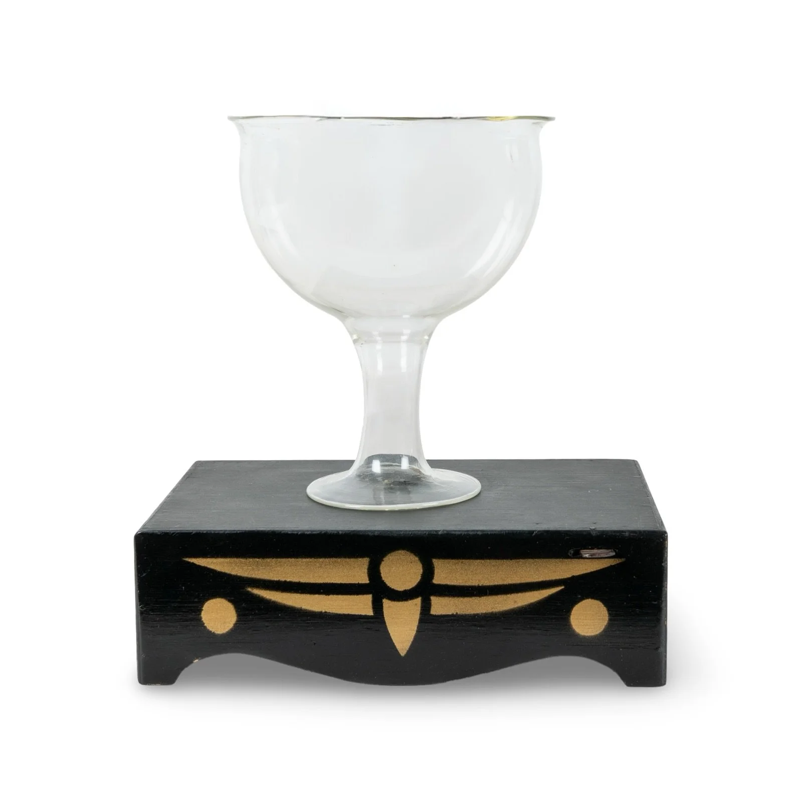 Crystal Goblet [Ink to Goldfish]. Abbott’s Magic Novelty Co., ca. 1940s. Ink in a glass bowl visibly changes to clear water with goldfish swimming within. Hand-blown glass goblet on painted wooden base. Uncommon. Inquire